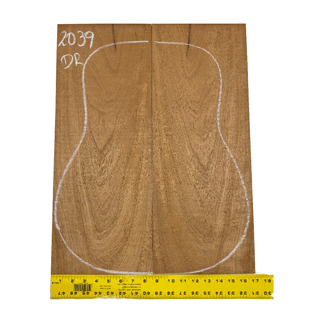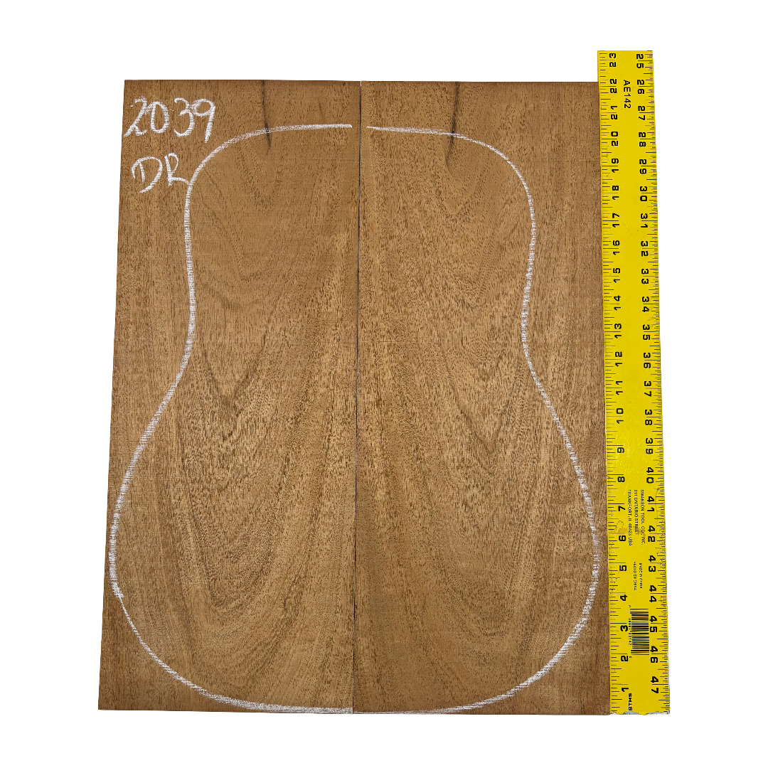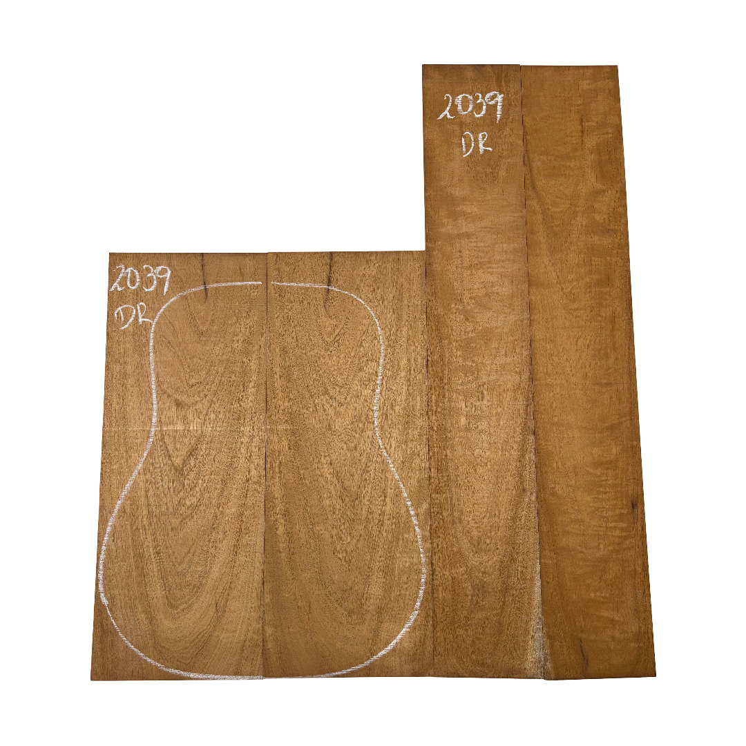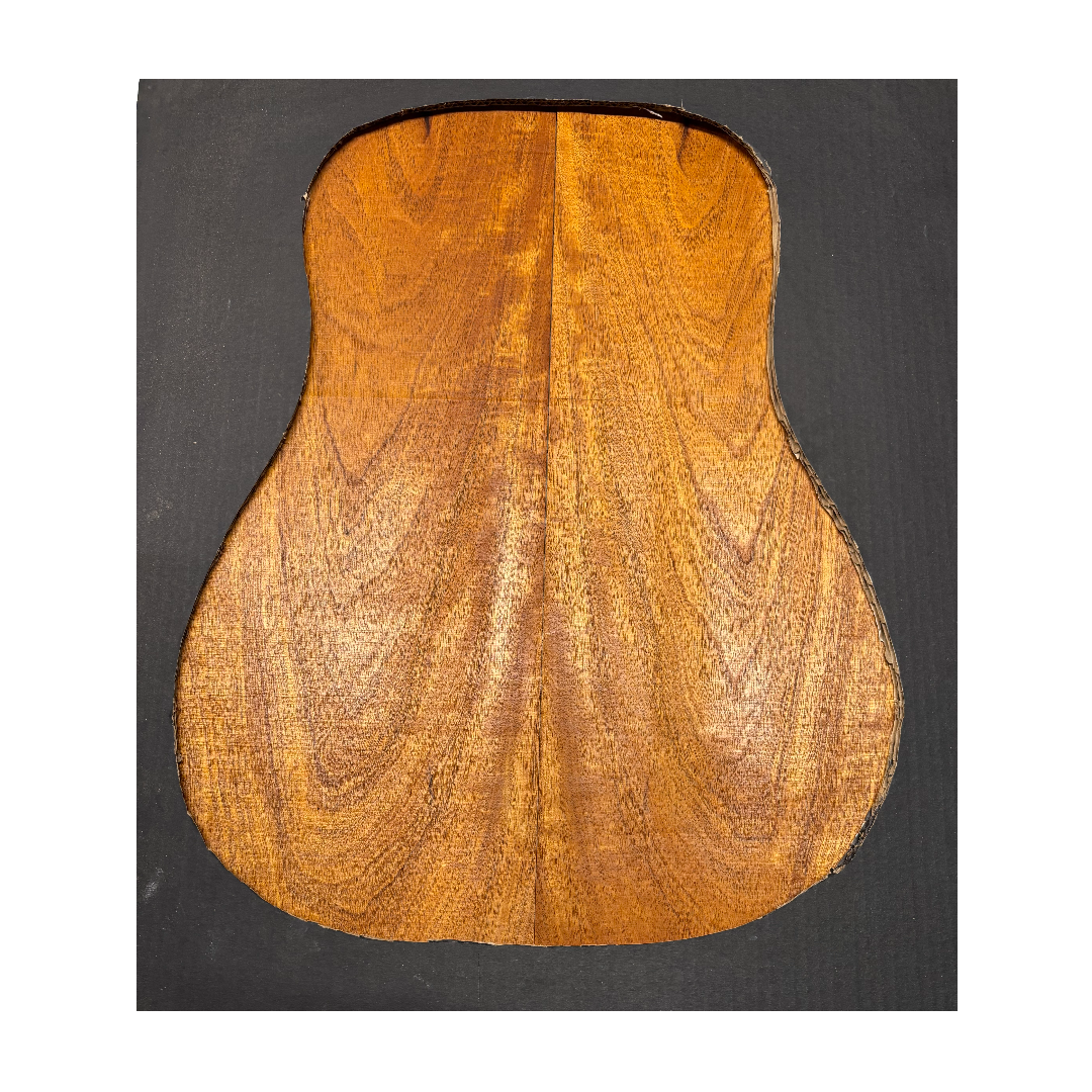 This Highly Figured Waterfall Flame Honduran Mahogany Dreadnought Guitar Back & Side Set features a stunning interlocked grain with mesmerizing waterfall flame figure that ripples beautifully across the surface. The rich reddish-brown heartwood displays golden chatoyance and depth, making each set visually striking and unique. Known for its warm, balanced tone with rich mids and smooth lows, Honduran Mahogany remains a timeless favorite for premium acoustic guitars.