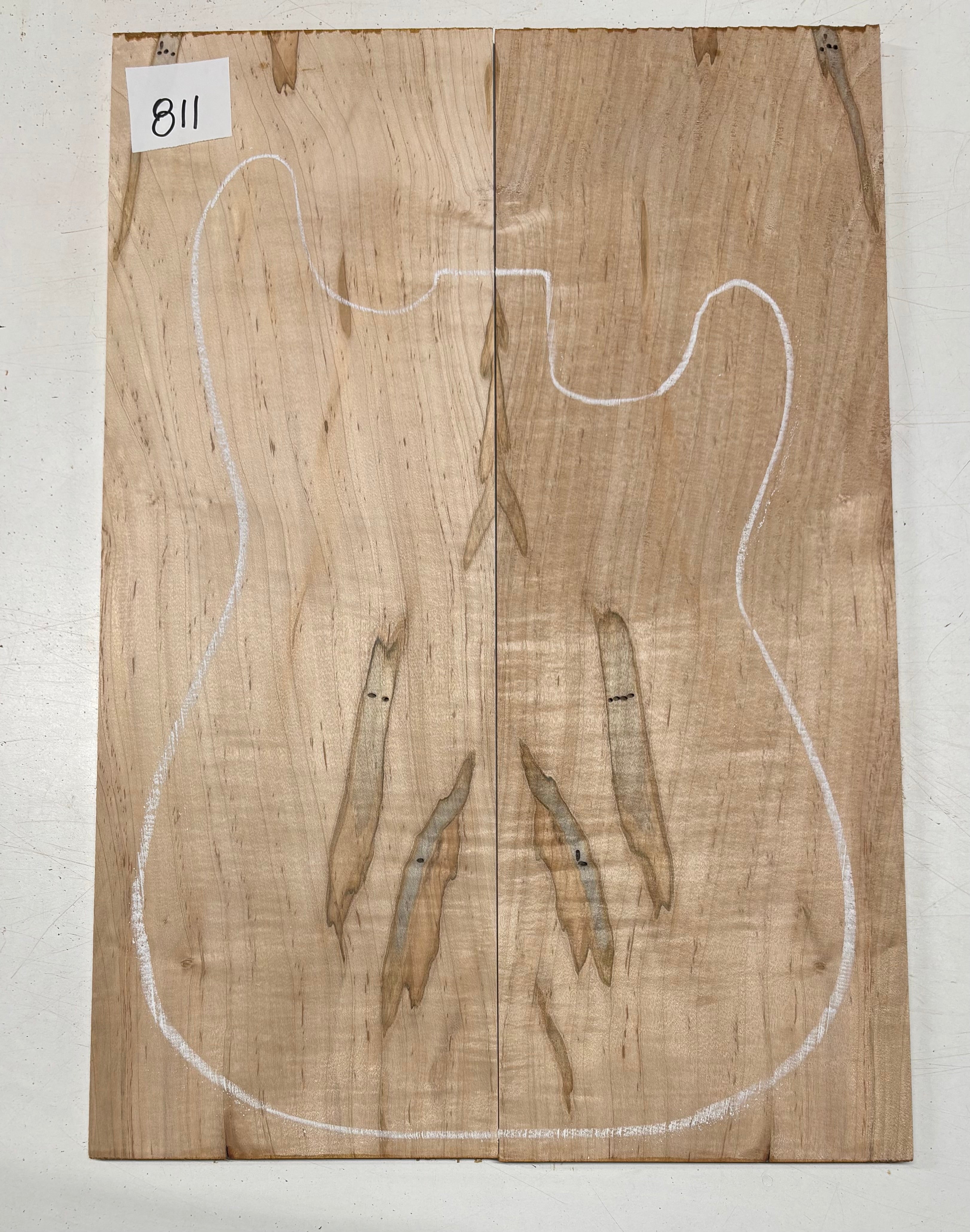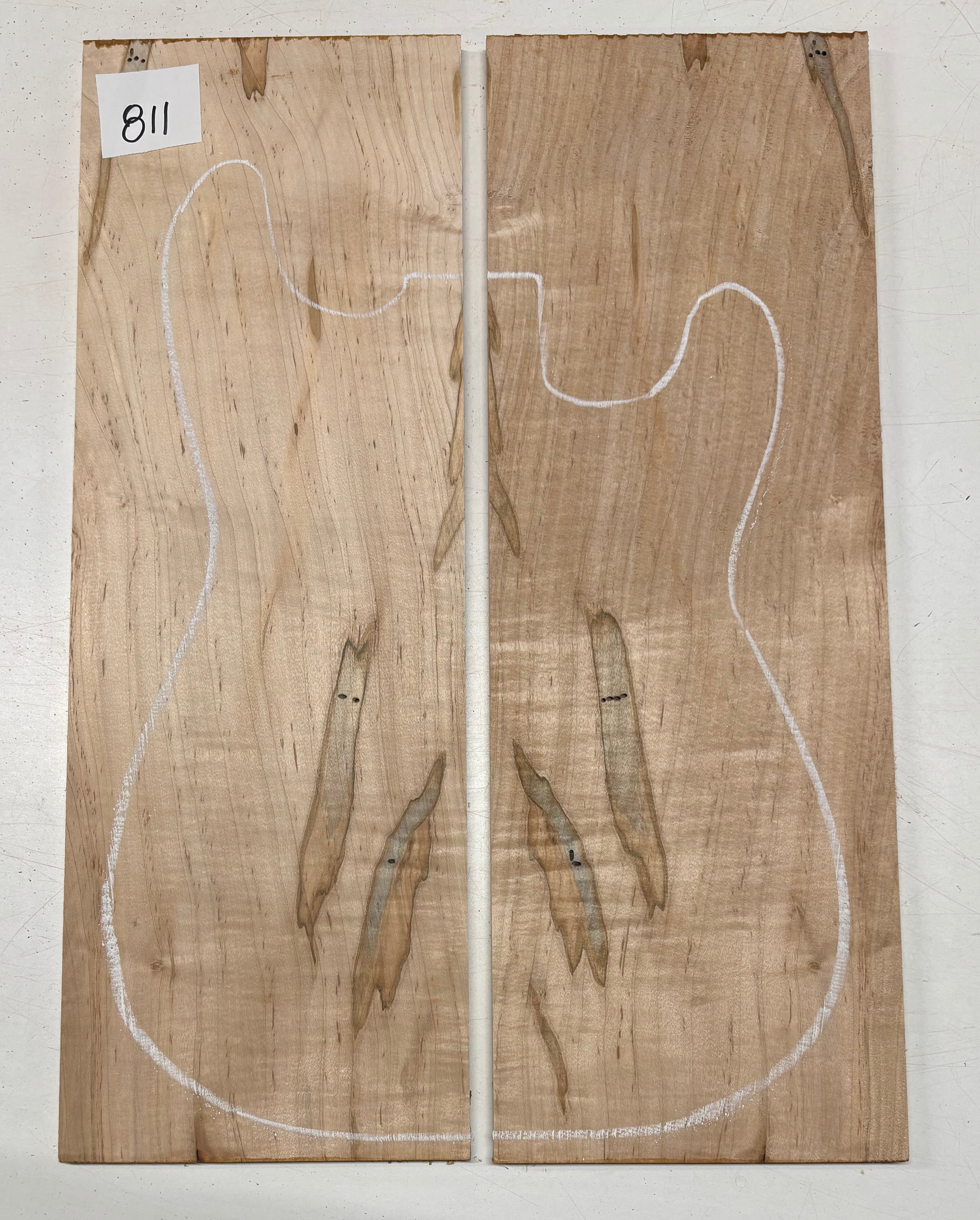 Flame Ambrosia Maple Guitar Drop Top 22" x 7-1/4" x 3/8" features dramatic flame figuring enhanced by unique ambrosia streaks and spalting lines. This highly decorative maple top offers a bright, articulate tone with excellent sustain, making it ideal for electric guitar builds and custom luthier projects. Carefully surfaced and properly seasoned, it provides stability, easy workability, and a striking bookmatched appearance for boutique-style instruments.
