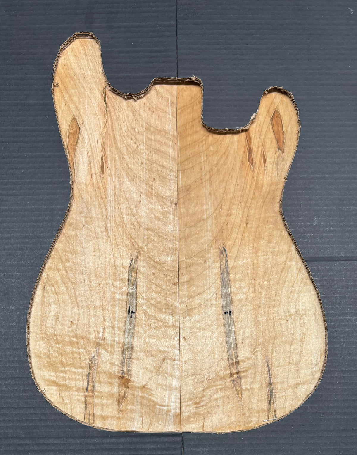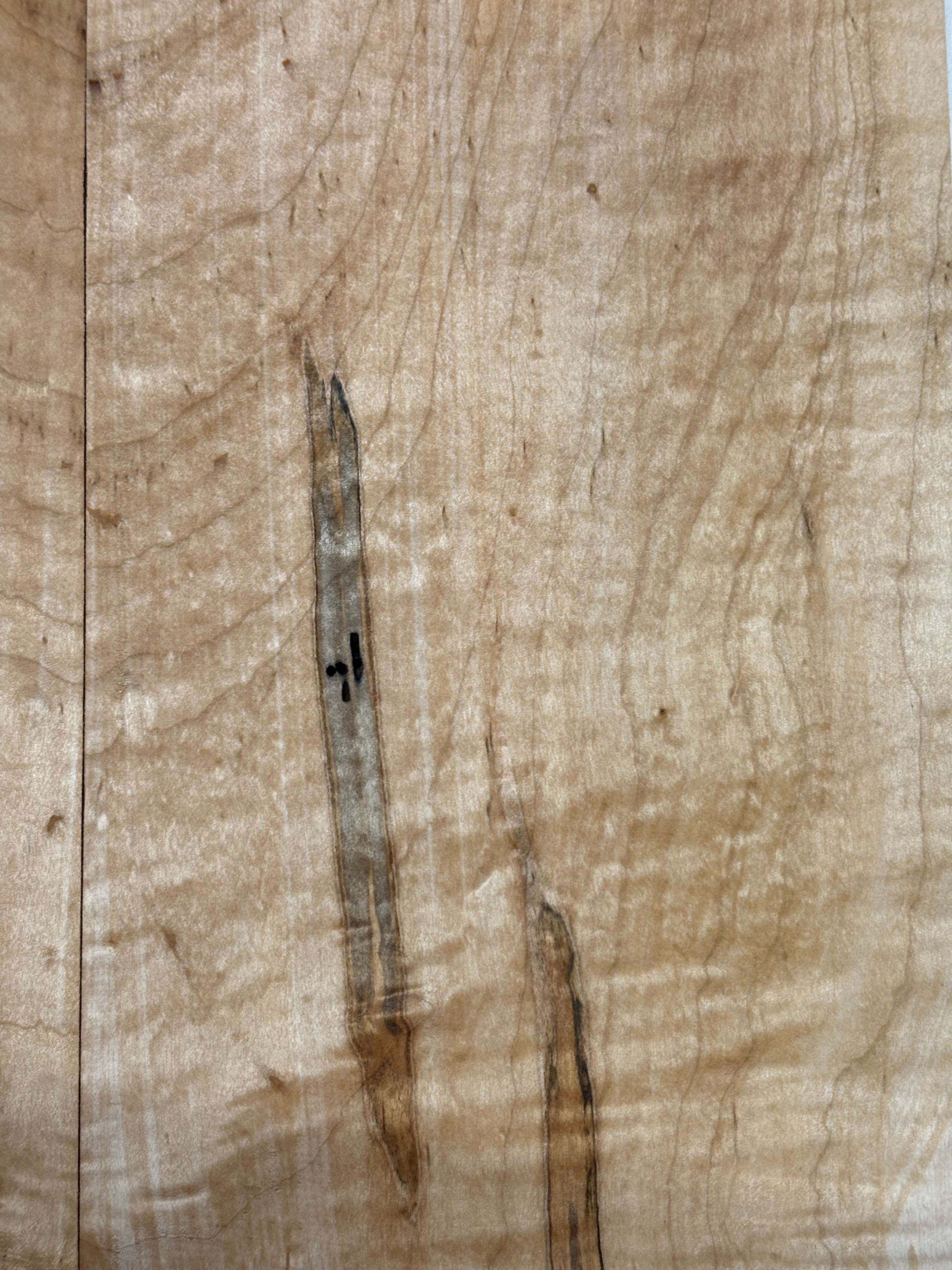 Flame Ambrosia Maple Guitar Drop Top 22" x 7-1/4" x 3/8" features dramatic flame figuring enhanced by unique ambrosia streaks and spalting lines. This highly decorative maple top offers a bright, articulate tone with excellent sustain, making it ideal for electric guitar builds and custom luthier projects. Carefully surfaced and properly seasoned, it provides stability, easy workability, and a striking bookmatched appearance for boutique-style instruments.