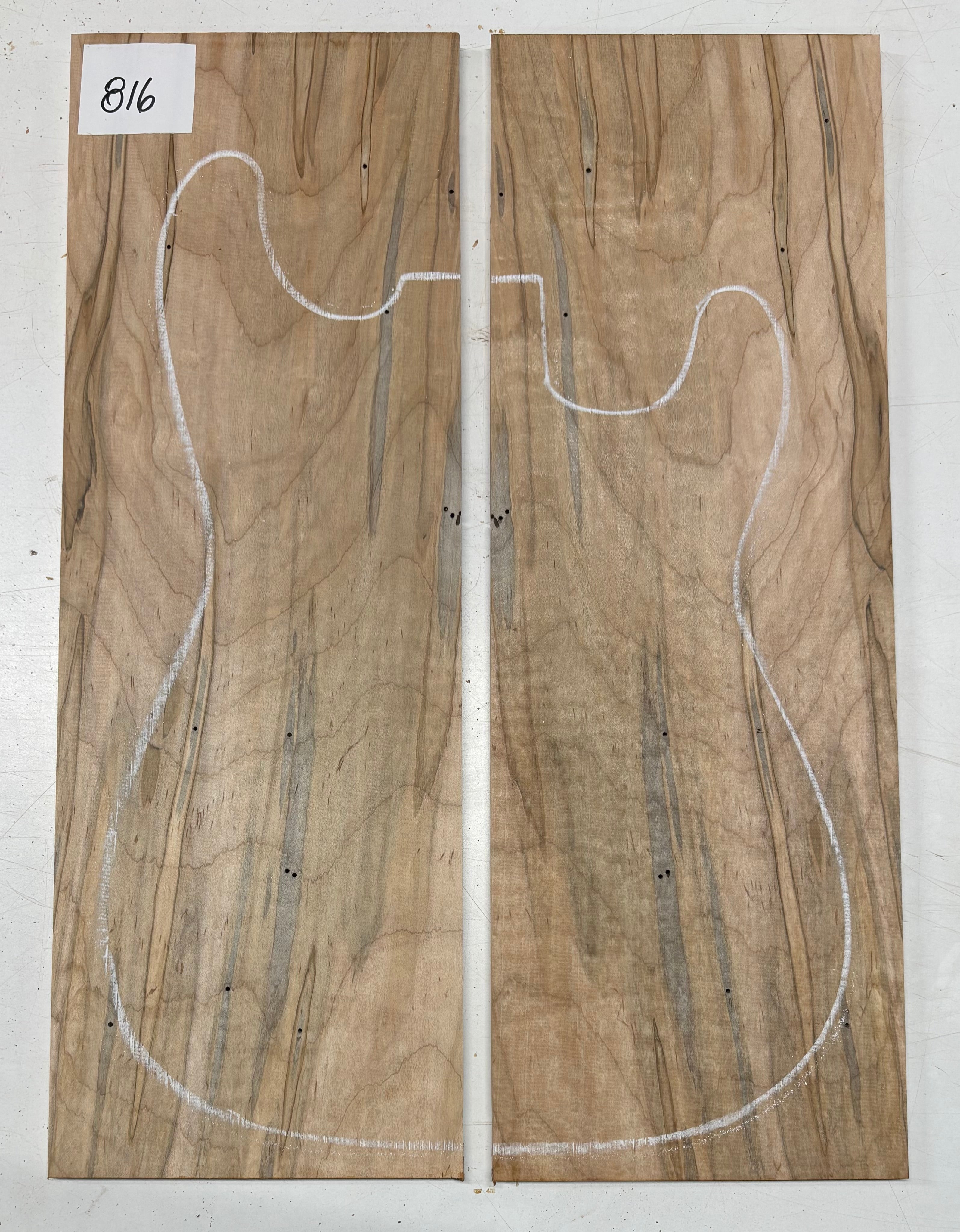 Flame Ambrosia Maple Guitar Drop Top 22" x 7-1/4" x 3/8" features dramatic flame figuring enhanced by unique ambrosia streaks and spalting lines. This highly decorative maple top offers a bright, articulate tone with excellent sustain, making it ideal for electric guitar builds and custom luthier projects. Carefully surfaced and properly seasoned, it provides stability, easy workability, and a striking bookmatched appearance for boutique-style instruments.