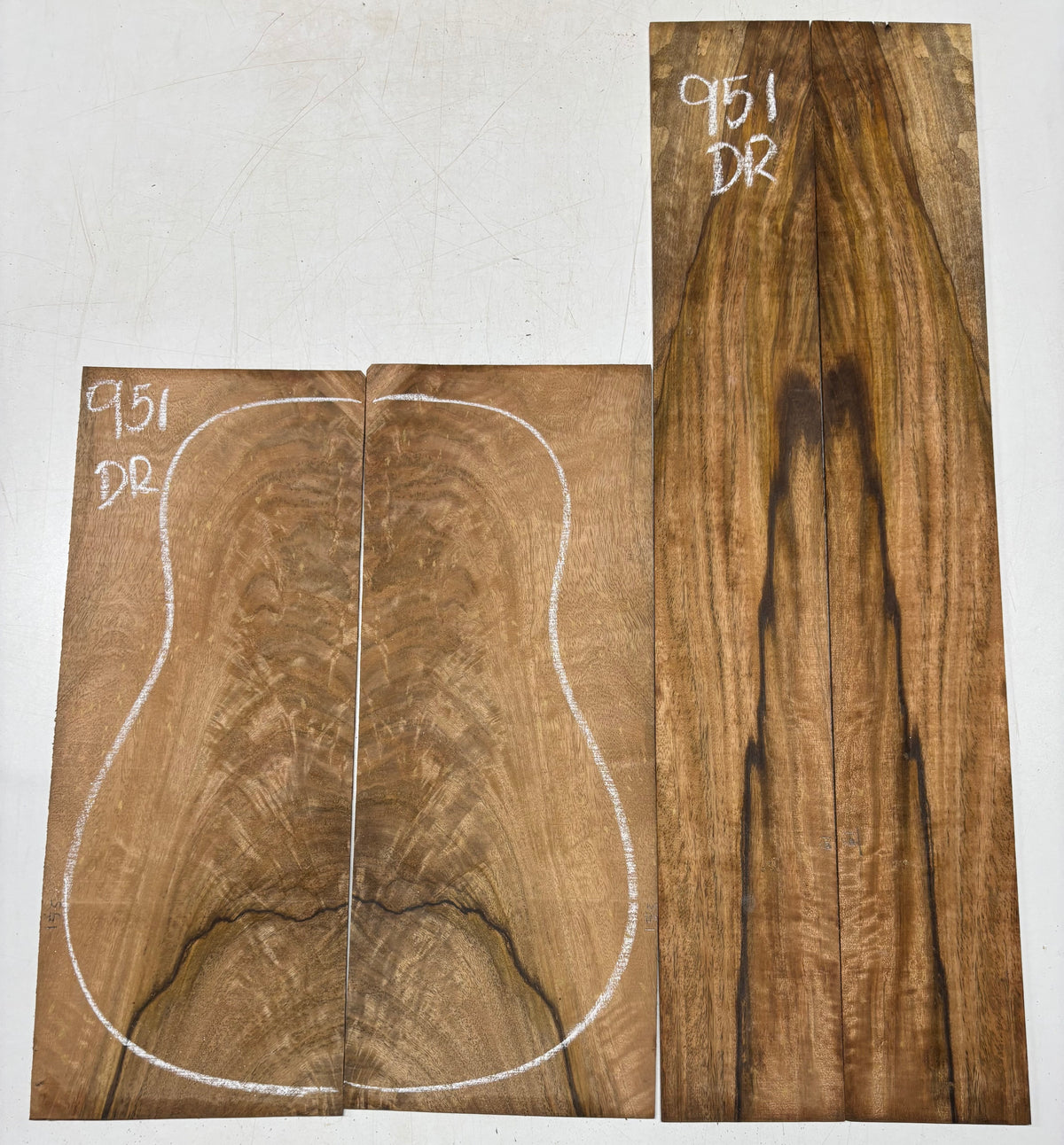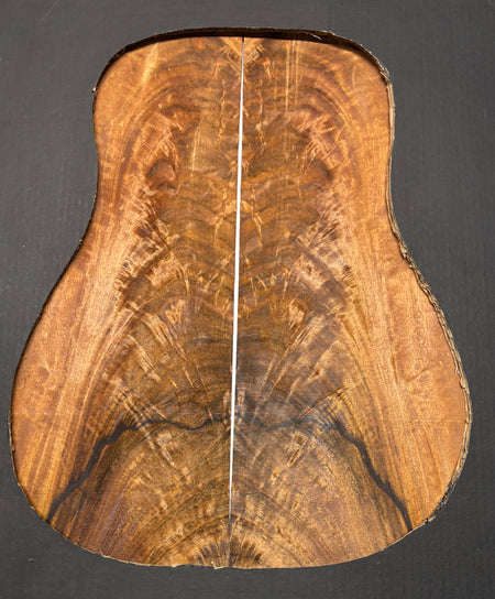 Experience the rare elegance of Flame Chocolate Mango, a stunning tonewood prized for its deep brown base, golden highlights, and mesmerizing flame patterns. This set combines exceptional visual appeal with a warm, balanced tonal character — offering clear mids, smooth highs, and rich sustain. Perfect for dreadnought guitar builds that demand both artistry and acoustic depth.