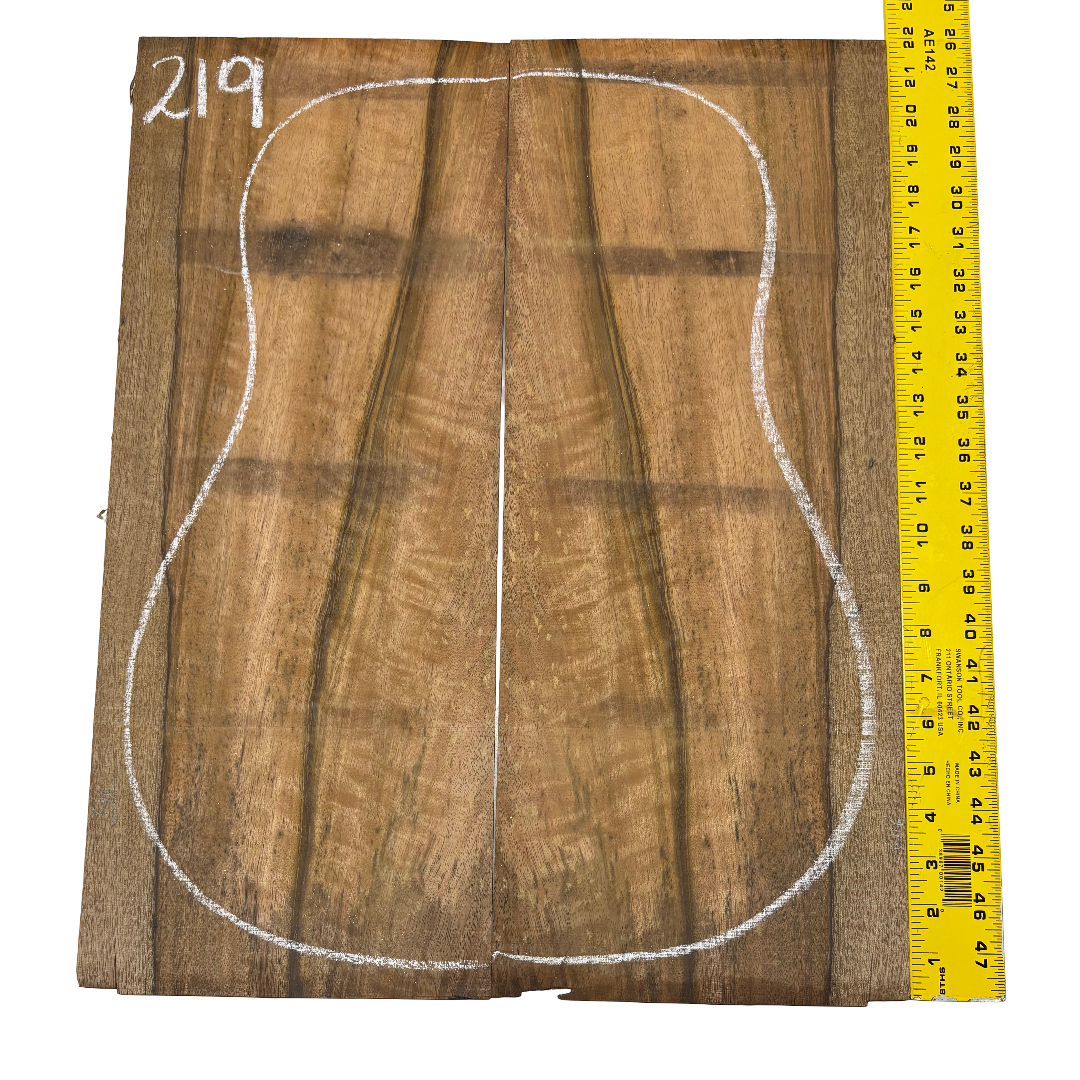 Featuring rich chocolate-brown heartwood with golden sapwood streaks and a striking flame figure, this Chocolate Mango set offers both visual beauty and warm, balanced tone. A rare exotic choice for luthiers seeking unique and durable dreadnought guitar back wood.