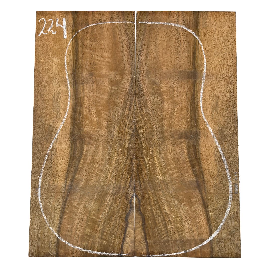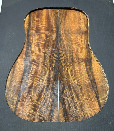 Featuring rich chocolate-brown heartwood with golden sapwood streaks and a striking flame figure, this Chocolate Mango set offers both visual beauty and warm, balanced tone. A rare exotic choice for luthiers seeking unique and durable dreadnought guitar back wood.