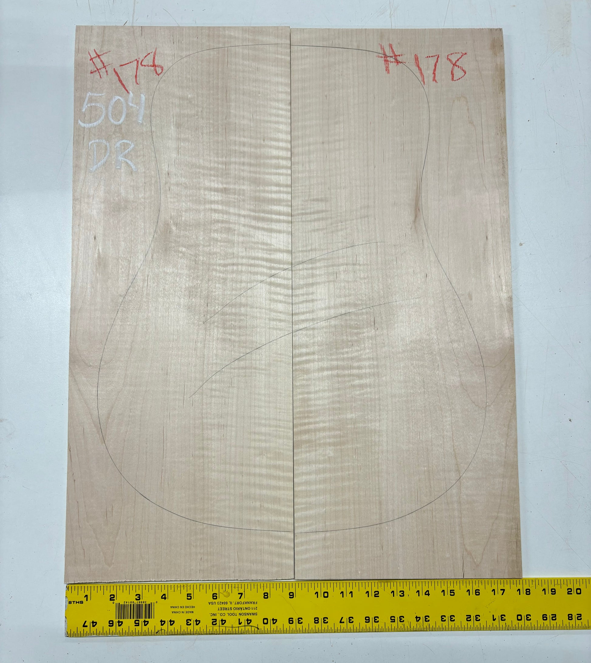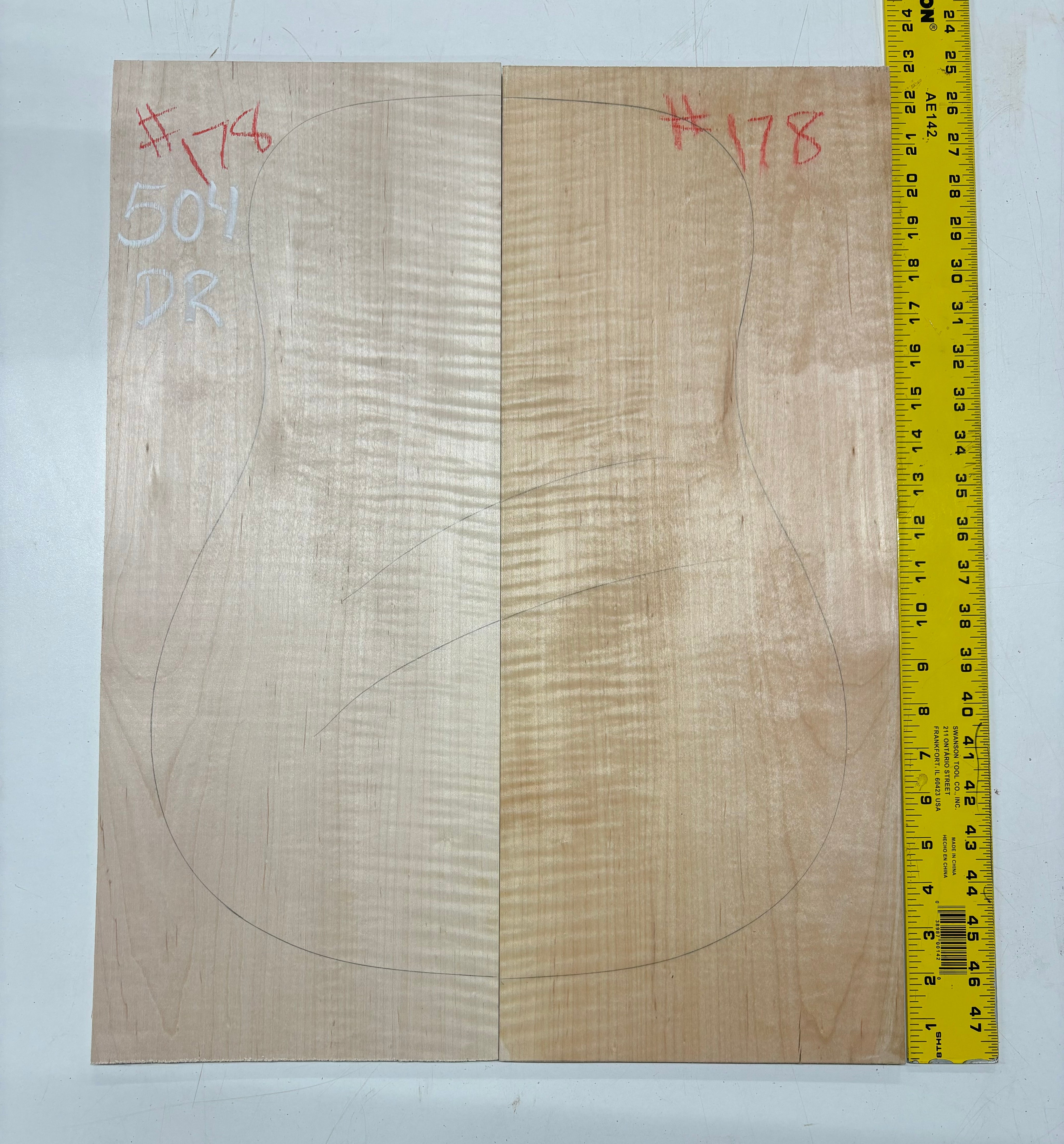 Elevate your luthiery craft with this exquisite Flame Maple Dreadnought Guitar Back and Side Set, a rare and highly sought-after tonewood combination. Graded AAAA, this set showcases stunning, dramatic flame figuring that will add a touch of elegance and sophistication to any custom guitar build.