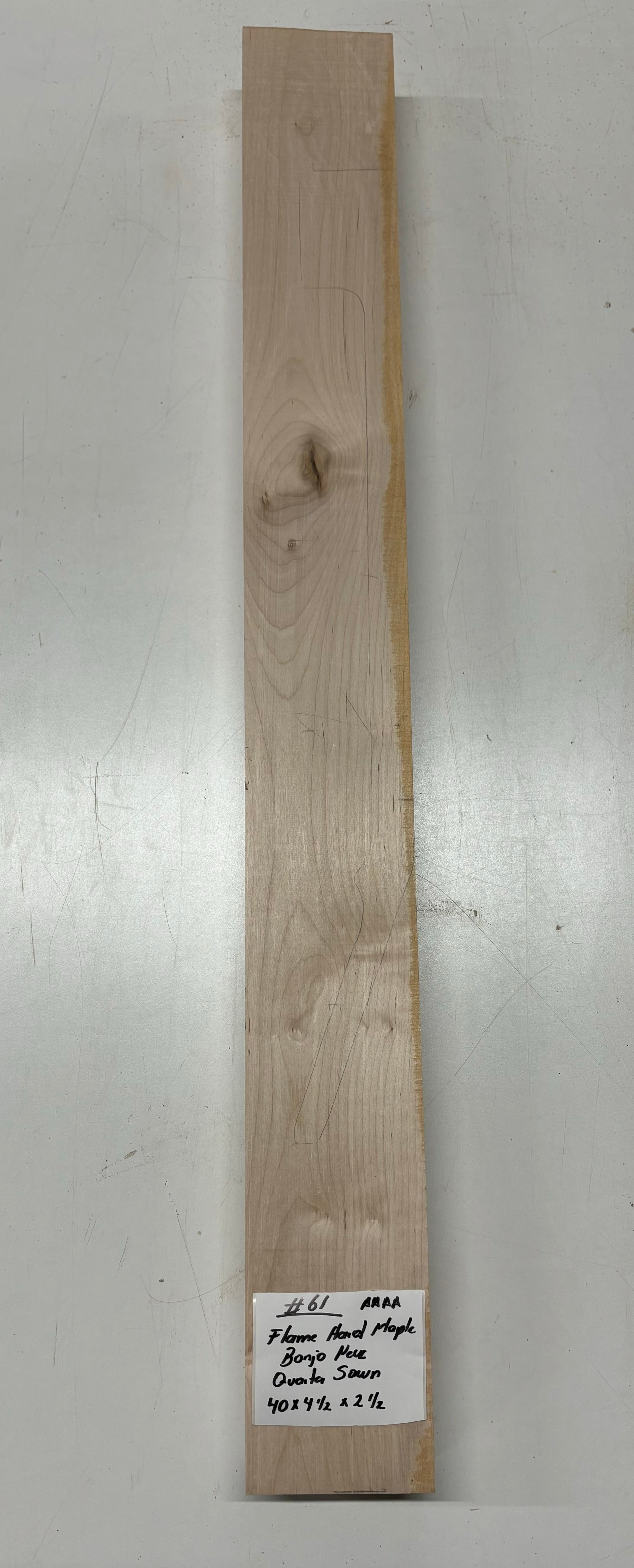 Elevate your banjo build with this Rare Find — a Flame Hard Maple Neck Blank of AAAA Grade quality. Renowned for its striking flame figure and bright, articulate tone, this Quarter Sawn neck blank offers both visual elegance and reliable performance. Ideal for luthiers seeking premium tonewood that combines beauty, stability, and crisp sound projection. Craft a banjo neck that stands out in both look and sound!