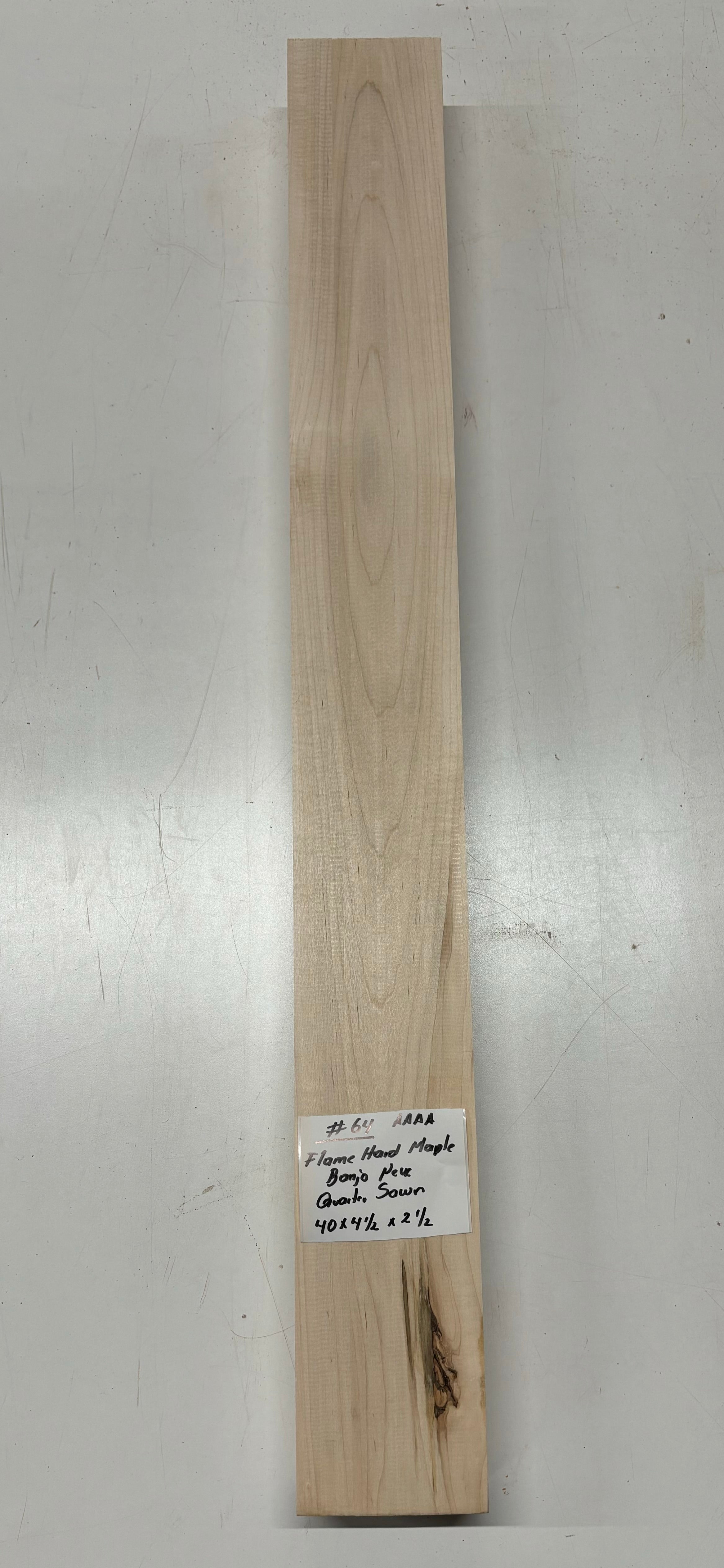 Elevate your banjo build with this Rare Find — a Flame Hard Maple Neck Blank of AAAA Grade quality. Renowned for its striking flame figure and bright, articulate tone, this Quarter Sawn neck blank offers both visual elegance and reliable performance. Ideal for luthiers seeking premium tonewood that combines beauty, stability, and crisp sound projection. Craft a banjo neck that stands out in both look and sound!