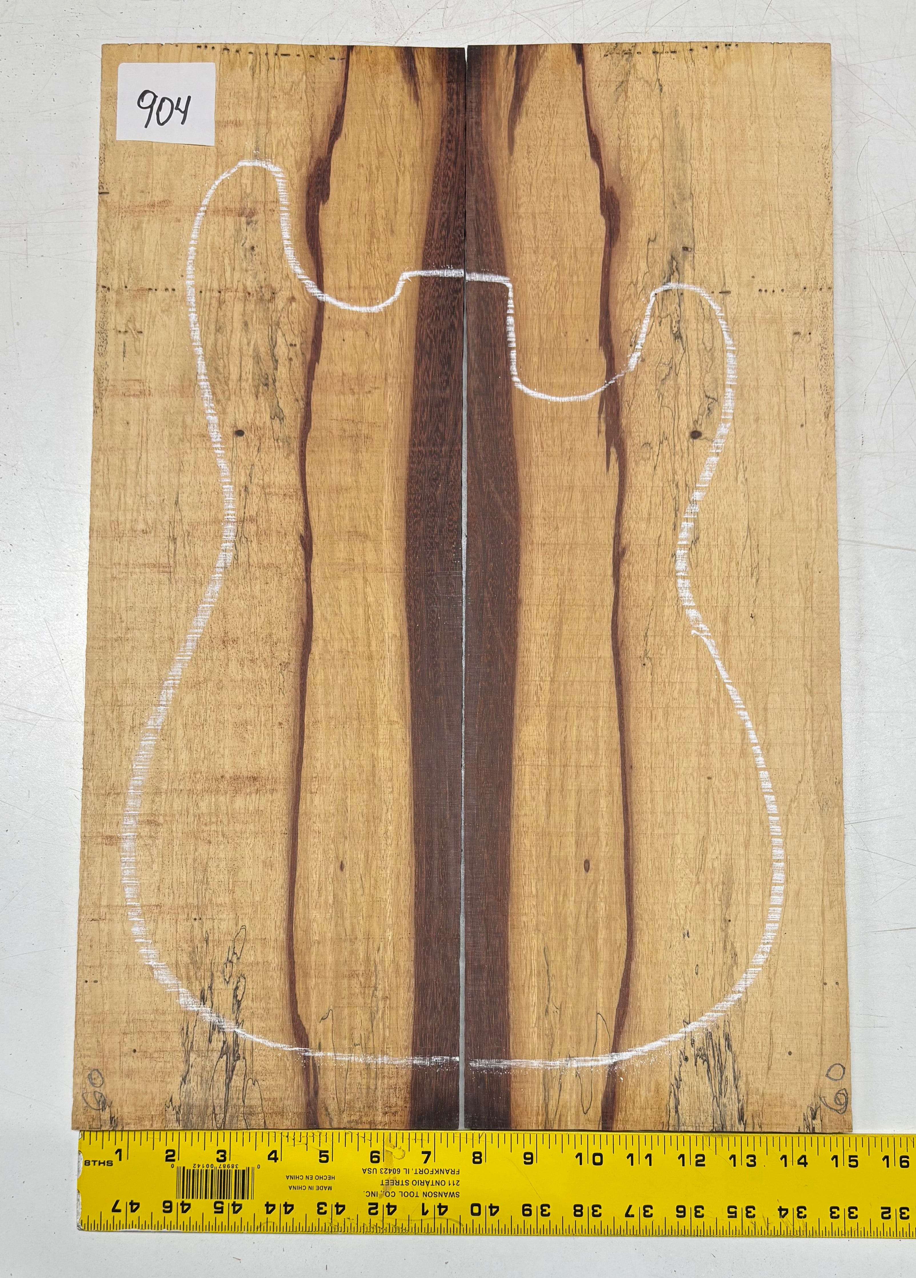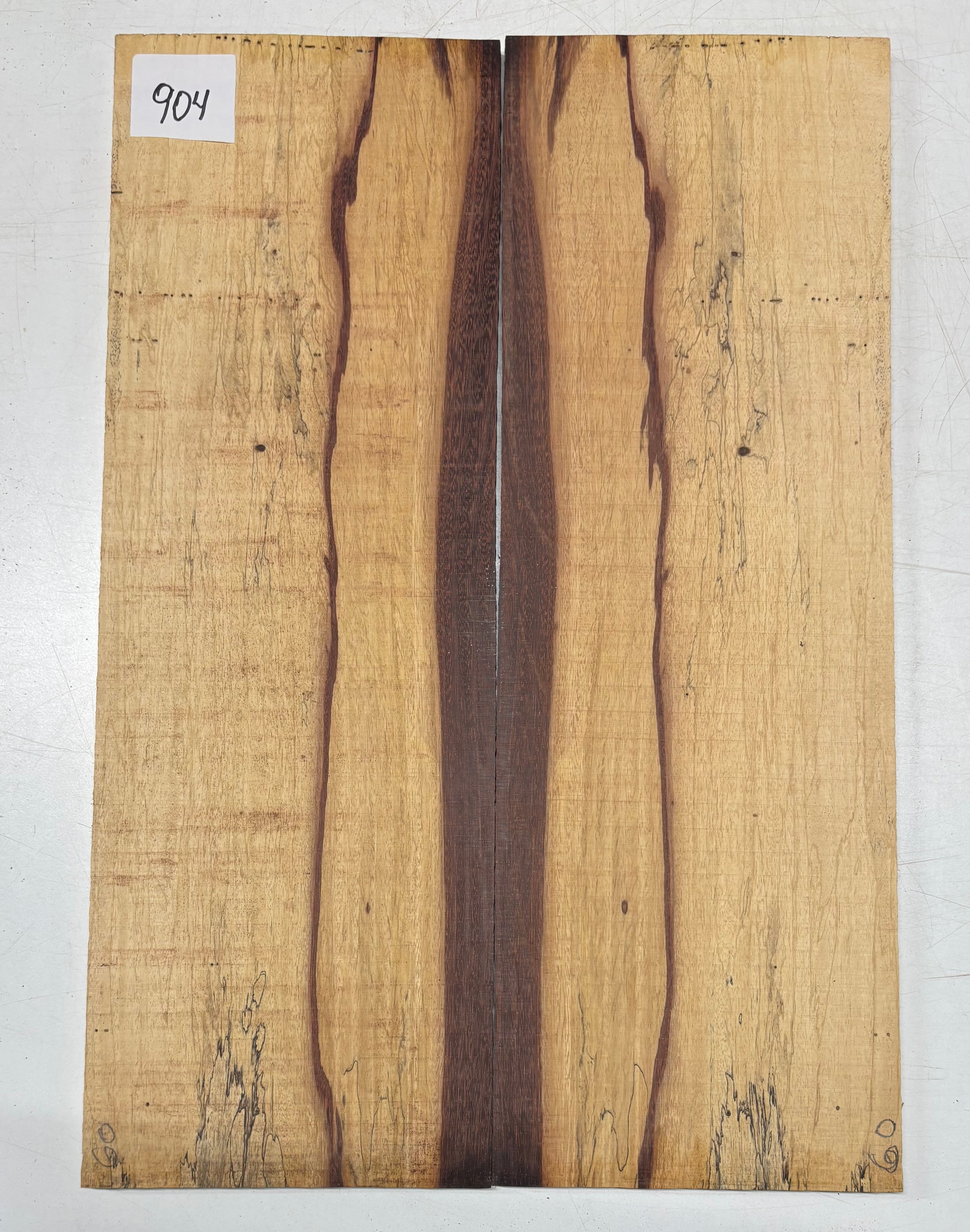 • Grain & Color: Golden-tan base with rich red-brown spalting and bold dark streaks,
