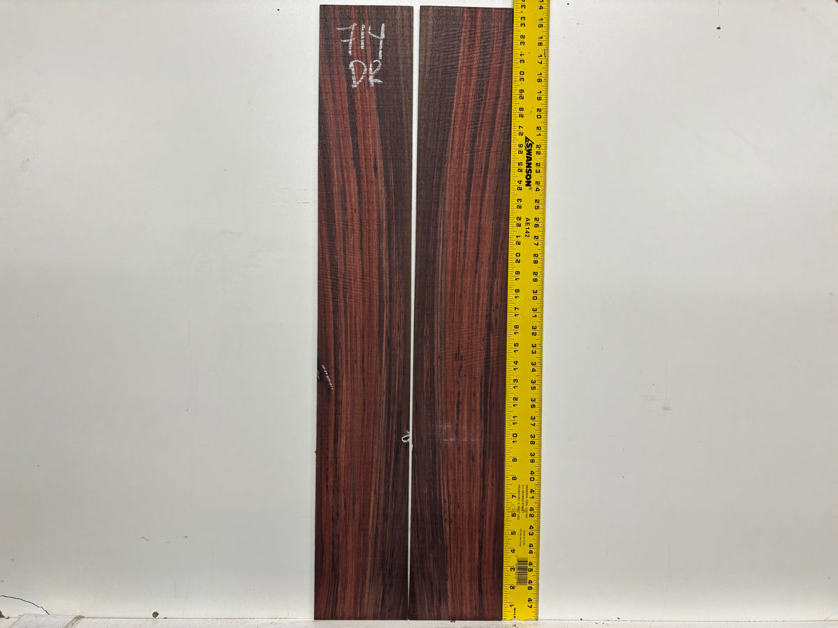This Royal Indian Rosewood side set offers deep chocolate tones with striking black grain lines, delivering a premium look and exceptional acoustic clarity. Known for its rich bass, vibrant mids, and sparkling highs, this classic tonewood is perfect for luthiers seeking depth, projection, and long-lasting stability. Ideal for high-end acoustics, it machines smoothly and finishes to a luxurious natural sheen — a go-to choice for custom guitar builds.